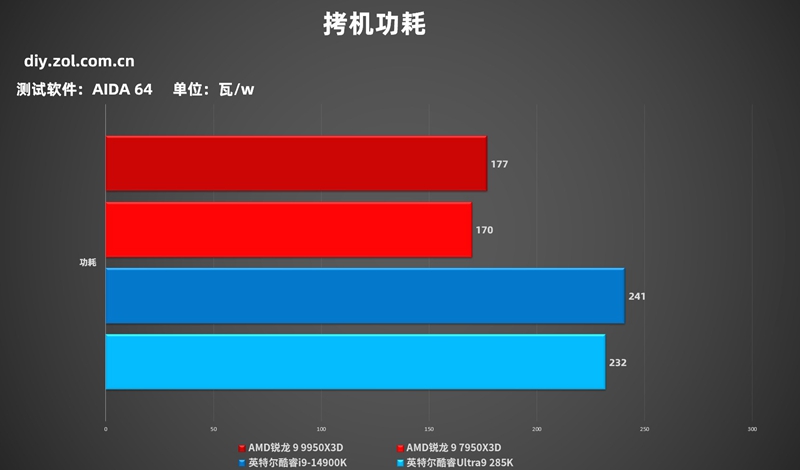 AMD 锐龙9 9950X3D最终在AIDA 64的FPU拷机中,封装功耗在177W左右,对比上代AMD 锐龙9 7950X3D只上升了不到10W,而对比英特尔酷睿i9-14900K和酷睿Ultra 9 285K低了很多。虽然这两款旗舰酷睿在英特尔新一代BIOS下缓解了首发时的功耗问题,但与目前AMD新一代X3D相比拷机还是有很大差异。所以能看出来AMD 锐龙9 9950X3D带来的性能飞跃提升不是通过无脑拉高电压功耗获得的,而是靠稳步升级架构工艺设计,这对于自家产品路线图有明确规划的AMD来说无疑是战略和技术上的双重成功。