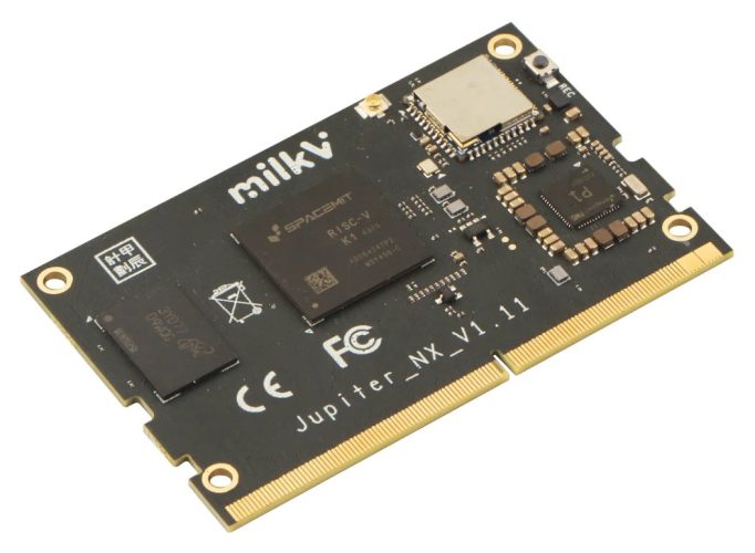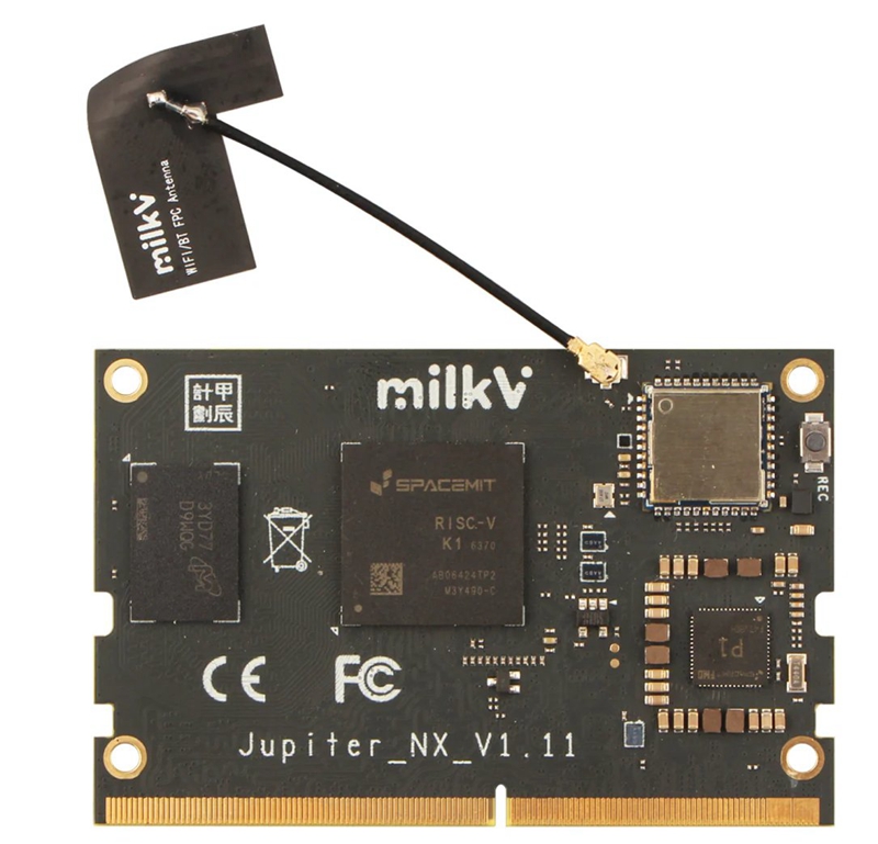 该模块化计算机转为英伟达 Jetson NX 载板设计,但不同于英伟达结合 ARM 处理器与 AI 加速器的硬件配置,Jupiter NX 采用8核 RISC-V 架构的 SpacemiT K1处理器,配备2TOPS 的 NPU 和 Imagination BXE-2-32图形单元。