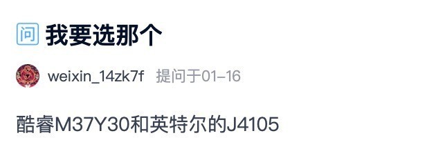 由于中关村在线APP开通了问答功能,我们收到了各种各样的问题,包括1万元的高存款和1000元的存款玩3A大作。当然也有比较离谱的,比如下面这个:英特尔酷睿M37Y30和赛扬J4150选哪个?