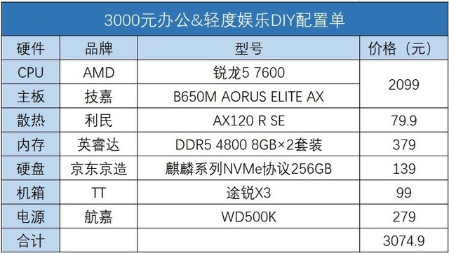 到目前为止,3000元的配置单已经完成,目前的性能可以吃掉主流的网络游戏。老巫师3和辐射3问题不大,处理办公和休闲娱乐绰绰有余。如果你不玩游戏,你将不会在未来五年内被淘汰。当然,用户也可以根据自己的实际需求更换硬件,主要是因为未来如果不增加独立显示器,可以将电源缩小到300W,降低很多预算,硬盘可以升级到大容量。
