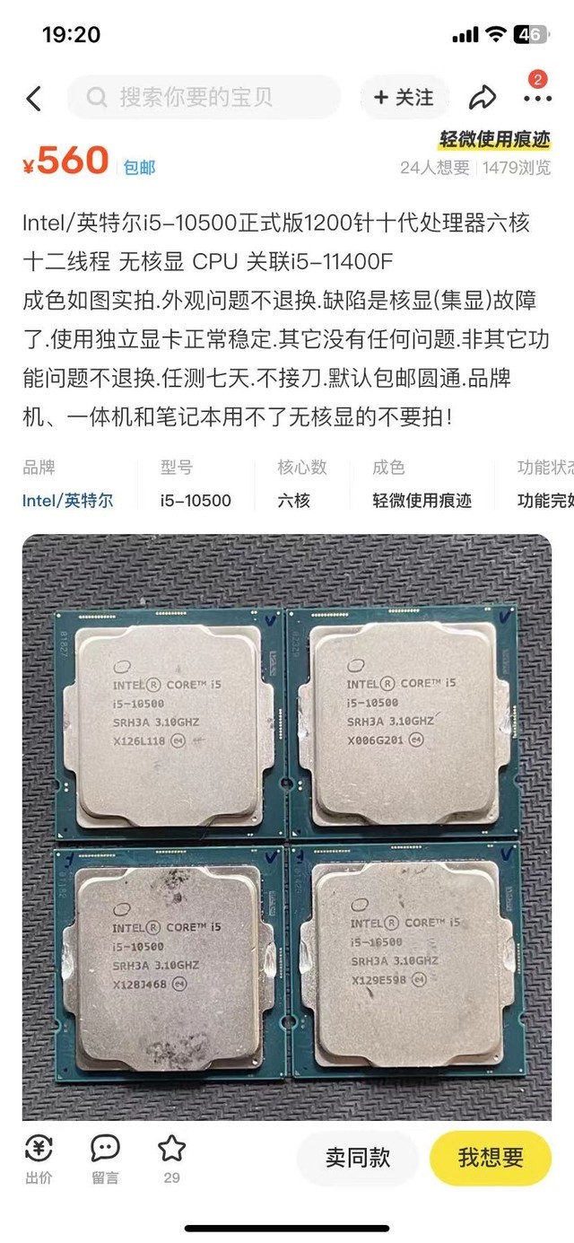 也就是说,这两种CPU其实都是有故障的版本,但是闲鱼的卖家却不会告诉你这是故障。尽管某些层面来说这些CPU也是能用的,价格也要略低一些,但是这种“不定时炸弹”建议还是别碰为妙。