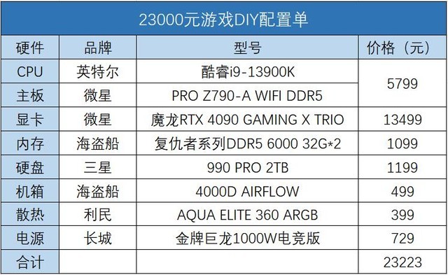 既然是顶尖的配置,I9-13900K肯定得安排上,但是你配了一个B760的主板是啥意思,B760不能超频,那你要13900K何用?你总价都5万了,但凡愿意稍微加点钱也不至于给配个不能超频的B760啊,大吹雪不给安排一下?