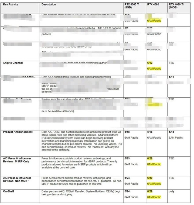 近日,MEGAsizeGPU泄露了一份有关NVIDIA GeForce RTX 4060系列的完整发售计划,其中RTX 4060非Ti型号定于6月29日上市,比NVIDIA最初宣布的时间早了几天。