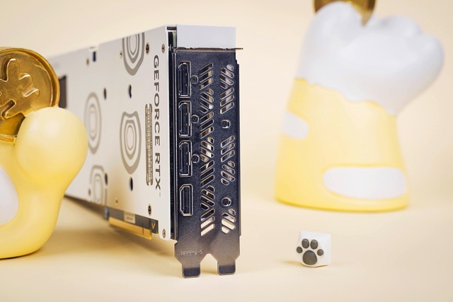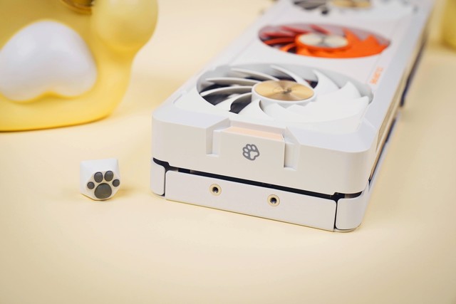 大橘显卡在定位上介于生活娱乐、游戏和生产力创作之间,卡身充满了猫猫元素。不过显卡背板的脚步涟漪效果,如果能做成不规则的呼吸灯,真正模仿猫猫走过的效果,一定会让有猫一族为之疯狂。但这样一来成本也势必会增加,对于一个平价系列显卡来说,确实不太划算。