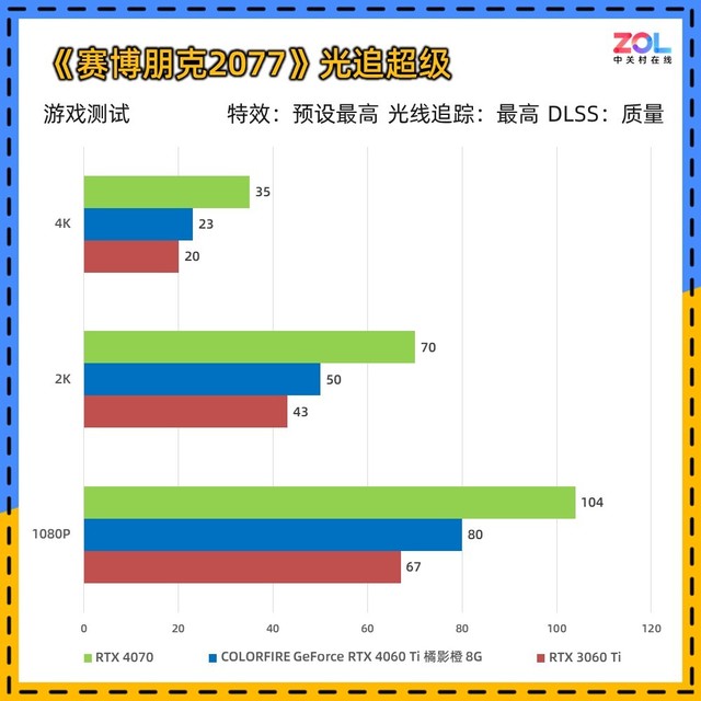 在《边境》中,七彩虹 RTX4060Ti 橘影橙 8GB相比RTX 3060 Ti的提升分别为:1080p提升36%;2K提升25%;4K提升17%,综合提升26%。