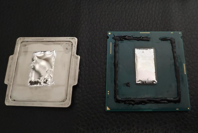 CPU核心和顶盖之间有两种连接方式,一种是硅脂,另一种就是钎焊,液金主要就是作为硅脂的替代方案出现的,利用导热系数更高的液态金属实现更好的散热表现。