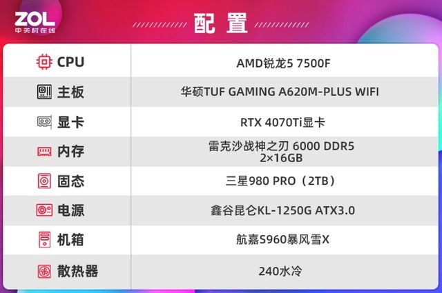 AMD 锐龙5 7500F搭配A620主板无疑是最佳选择,而且搭配A620主板时没有CPU超频能力,所以用AMD自带的幽灵散热器即可。