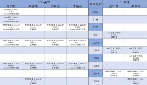 在上图之中笔者总结了目前在微软官方商城当中的Surface Laptop 4的各种型号的组合,配置的主要差别也都列出来了,大家可以根据自己的使用需求来选择想要的Surface Laptop 4。