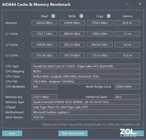 本次微软Surface Laptop 4搭载了两种处理器,有基于AMD 锐龙移动处理器集成Radeon显卡Microsoft Surface定制版,分别是R5和R7的两款移动端产品。另外更多的型号则是提供了基于第11代Intel酷睿处理器,分别搭载i5与i7的移动端版本,笔者手中拿到的这款就是基于Intel酷睿i5-1135G7处理器的版本,内部集成了Intel Iris锐炬Xe处理器显卡,可以支持原生8K60Hz画面输出,图形性能非常强。