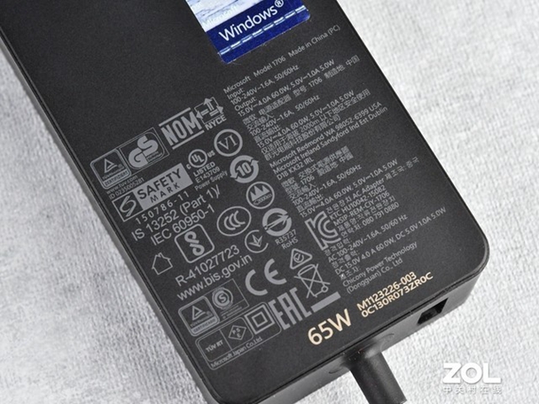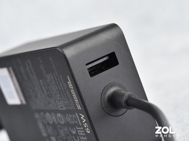 原装充电适配器配置的是65W的小方块,其中60W提供给微软Surface Laptop 4充电使用,另外5W则额外提供了一个USB Type-A的USB接口可以为手机等设备充电,出差的时候又可以少拿一个充电头了。