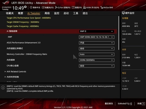 华硕 B660主板支持内存超频,华硕 B660-A GAMING WIFI D4 吹雪主板BIOS中也增加了相应的频率、时序、电压等调节设置,嫌麻烦或者萌新用户也可以直接在AI智能超频选项中开启XMP设置。