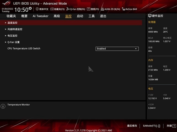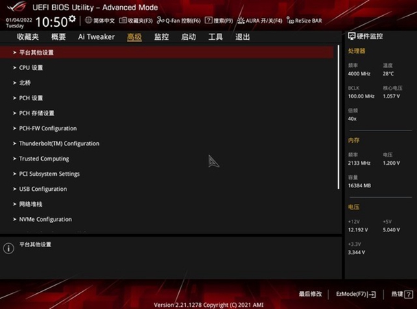 BIOS方面,华硕 B660-A GAMING WIFI D4 吹雪主板也延续了优秀的中文化图形BIOS设计,界面简洁、干净,功能丰富,便于调校。