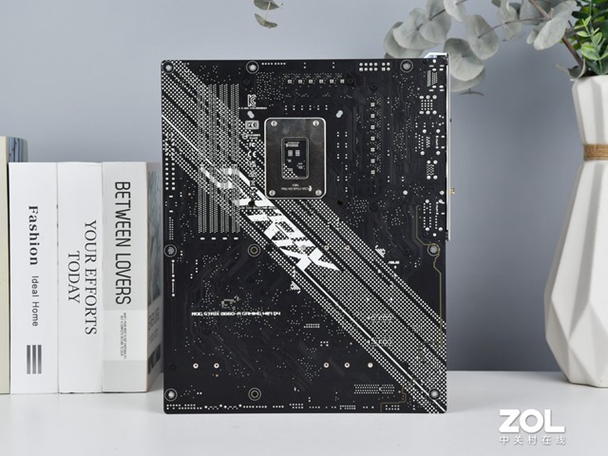 主板背部有一道ROG STRIX经典的电竞图腾纹路。