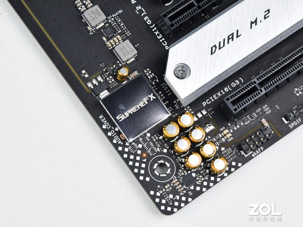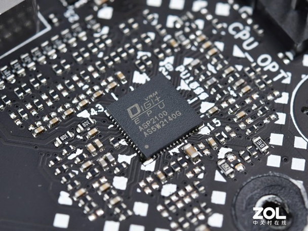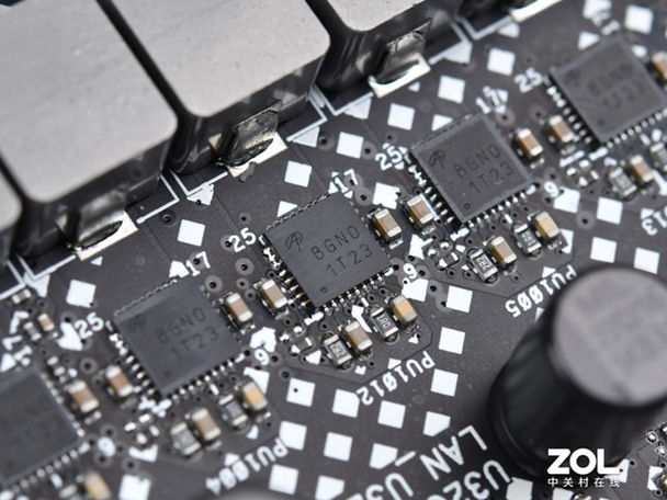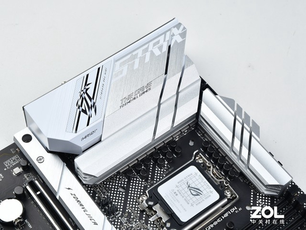 VRM区域由带ROG STRIX和败家之眼LOGO的散热器覆盖,散热片底部装载导热垫辅助MOSFET进行散热。