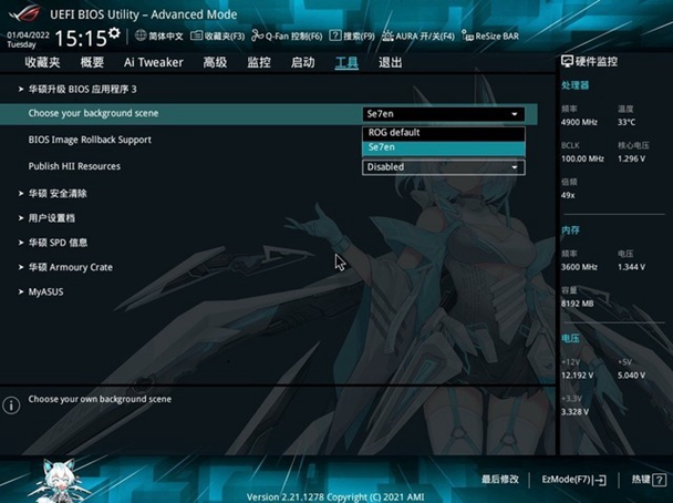 同时这款主板的BIOS还可以在工具选项中选择吹雪版本界面,二次元浓度很高!