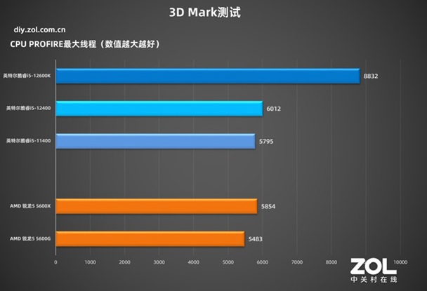 在3D Mark的测试中,酷睿i5-12400甚至已经基本超越了锐龙5 5600X,除了Fire Strike物理性能外都赢了,也比酷睿i5-11400优秀很多,这一代的性能核心不容小视。