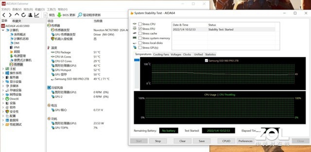 经过了1个半个小时的拷机测试,单拷压力最大的FPU,酷睿i5-12400的温度也只有51℃左右,华硕 B660-A GAMING WIFI D4 吹雪主板+ROG STRIX LC Ⅱ 360 ARGB吹雪散热器应对这款处理器太简单了,这套组合压住高端12代酷睿非K系列也不是问题。