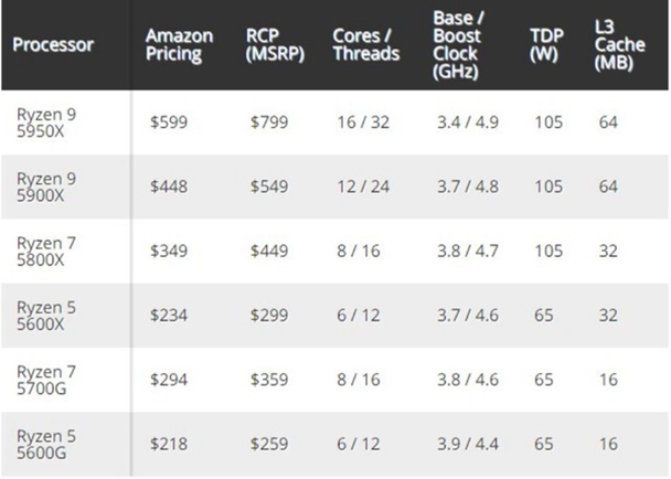 AMD的锐龙5000处理器大量降价,Tom的硬件新闻显示,建议零售价为299美元的锐龙5 5600X现在只需234美元,比以前下降了 21.7%; 16核旗舰锐龙9 5950X降价200美元,599美元的价格创历史新低。