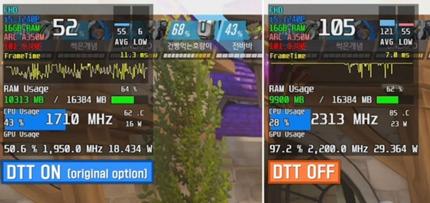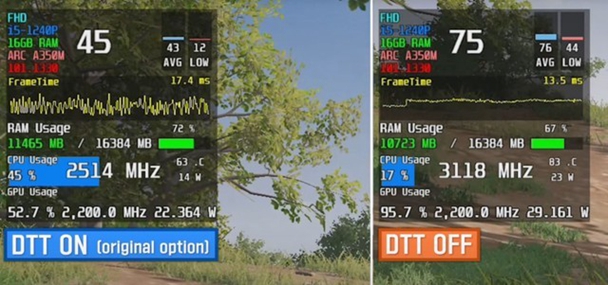 日前一位源自日本的YouTuber分享了英特尔 A350M 移动端显卡的试验战绩,在对此款显卡进行更新驱动后,这名YouTuber辨认出如果停用了项名叫Dynamic Tuning Technology(DTT)的核心技术后,IntelArcA350M移动端显卡的性能就会大幅上涨。