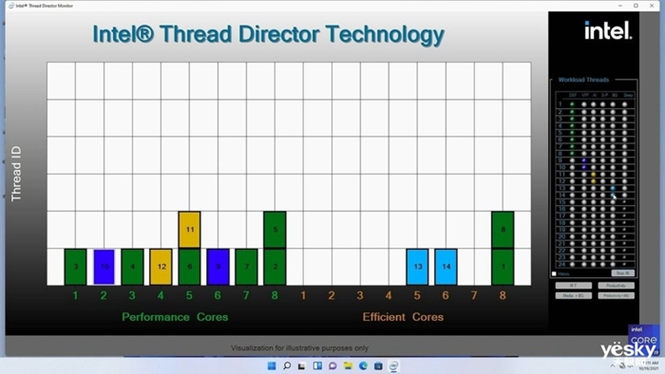 这些功能的引入彻底地改变了作业系统和CPU之间现代的沟通方式,英特尔和作业系统厂商在共同推进这样崭新的线程调度制度,在英特尔和微软的共同努力下,在最捷伊Windows 11上面,充分发挥了英特尔的硬件线程调度器,可以实现线程在混和架构下更合理的重新分配,展示出更高效、更智能化的线程重新分配语义。