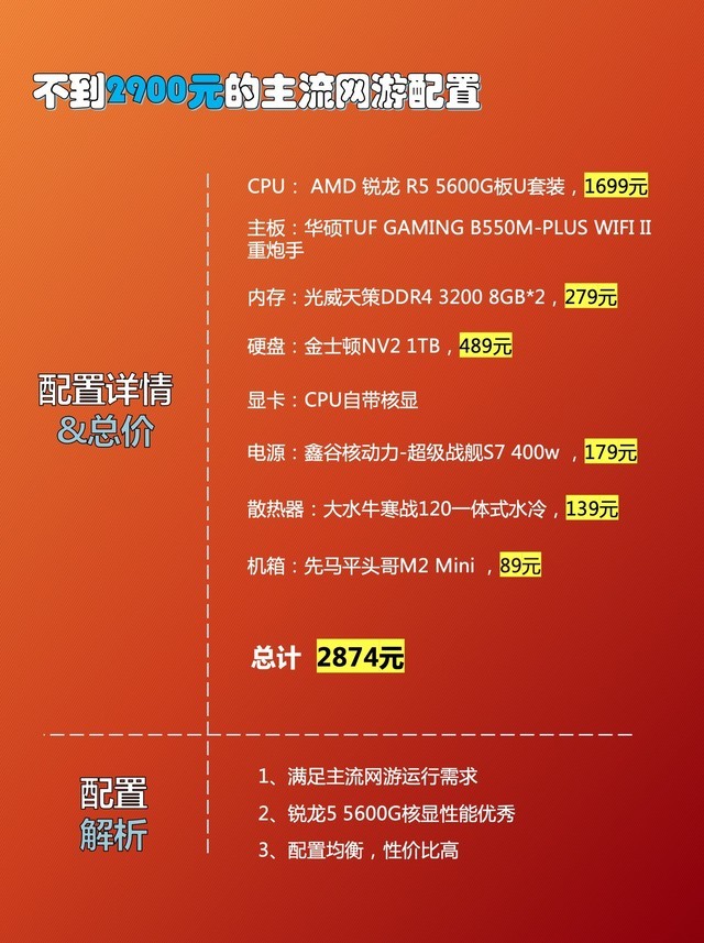 对于大多数网游用户来说,电脑的配置不需要3A大作那么强大,今天2900元硬件配置可以玩主流网络游戏。
