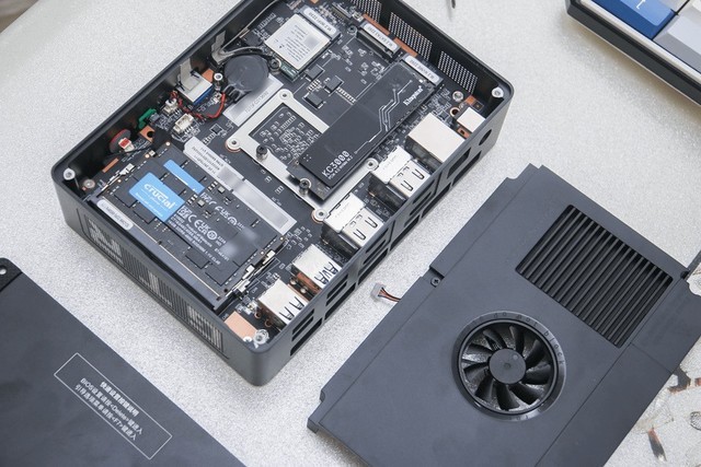 零GTR6机身重量为0.82kg,延续了迷你主机体积小、节省空间的特点。与该品牌的SER和EQ系列产品相比,它的重量和体积略大。毕竟性能有了很大的提升,散热也要跟进。