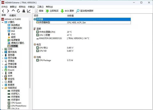 查看硬件初始温度的AIDA64。