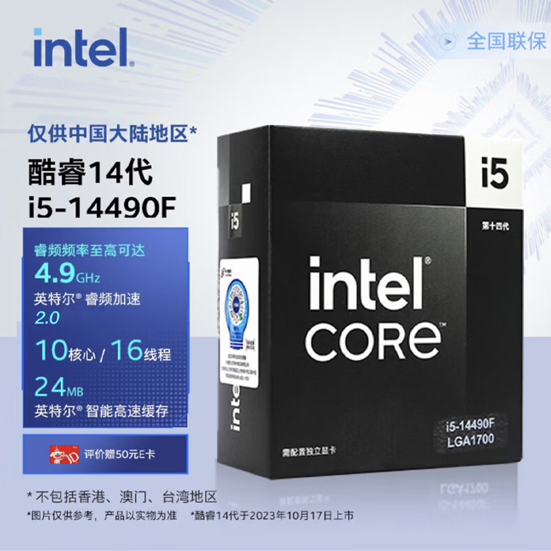 英特尔酷睿 14代 CPU处理器 台式机 原盒 i5-14490F原盒【10核16线程