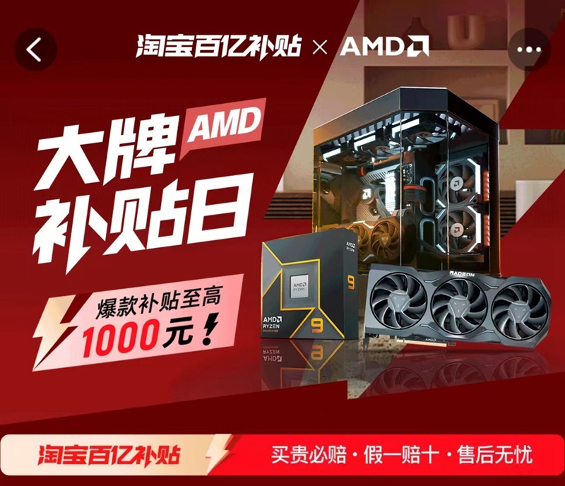 淘宝百亿补贴AMD大牌补贴日活动链接:点此进入