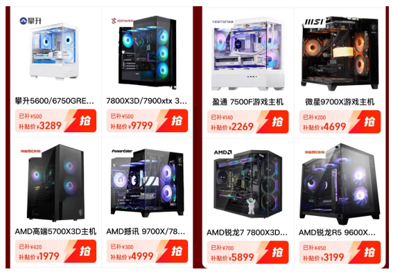 AMD大牌补贴日参与的爆款整机非常多,所以玩家朋友们可以多次进入查看,找到补贴力度更大的整机。当然想要购买爆款锐龙处理器单品、板U套装这些硬件的产品也可以前往AMD天猫官方旗舰店,逛一逛都能找到自己想要的。