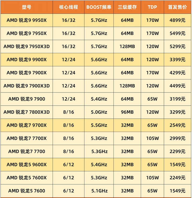 价格方面,AMD 锐龙9 9950X和AMD 锐龙9 9900X已经公布,定价对比同时期锐龙7000时首发时低了不少,尤其是AMD 锐龙9 9900X,低了近千元。