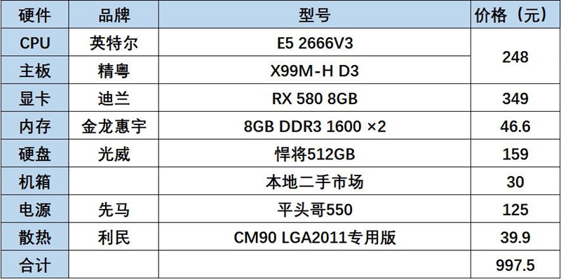 首先要说的是,1000元这个价位段明显要低于正常要玩的价格,所以游戏体验自然也会打折扣,而且无法避免二手硬件,同时板U要降级到DDR3平台,再做好显卡是矿卡的心理准备。