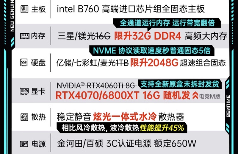 至于信息差,这里要聊的可就多了,一般来说,商家在售卖CPU的时候会搭配一个出货量小的冷门主板,一般是酷睿i5-13600K搭配B760M主板,或者反之,酷睿i5-13400F搭配Z790主板,特点是一个能超频,但是另一个不支持超频,大多数玩家自己不会这么搭配,其中有不少主板是整机定制的丐版,包括供电,接口,散热都进行了缩水,价格自然要低上不少。CPU则是散片,如果你用盒装的价格去对比,那当然就要贵上不少了。