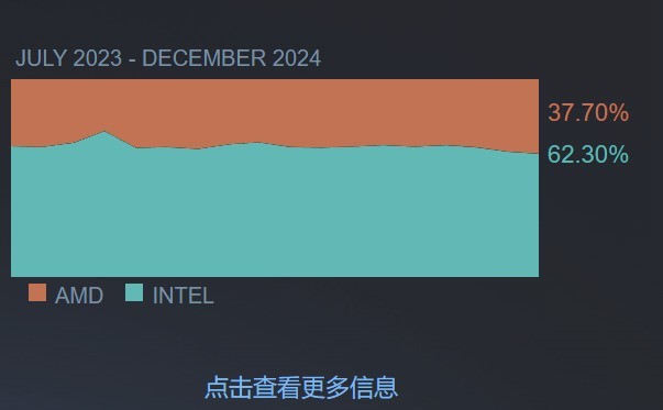 照目前的趋势,以后肯定还会有更多游戏针对锐龙进行优化,这种战未来的投资才更有盼头,这点从Steam硬件调查的处理器占比就能看出来。
