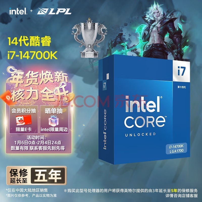 英特尔(Intel) i7-14700K 酷睿14代 20核28线程 睿频至高5.6Ghz 五年质保 台式机盒装CPU 畅玩黑神话悟空