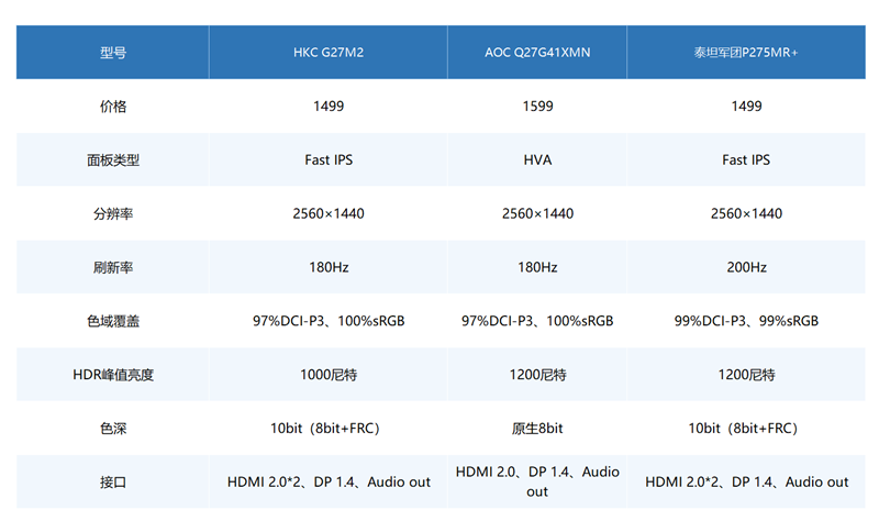 与AOC的显示器相同,泰坦军团P275MR+同样是一款经过升级之后的产品,虽然与HKC都采用的是FastIPS面板,但其拥有高达200Hz的刷新率以及高达1200尼特的HDR峰值亮度,单从参数上来看显然更加值得选择,如果你不在乎品牌以及售后的话,泰坦军团P275MR+同样非常值得选择。