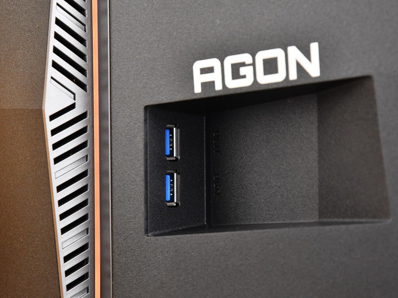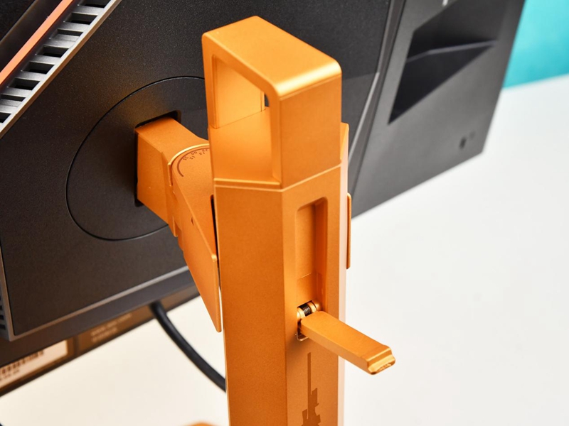 显示器背部整体的外观造型依然是延续了AG系列的特色,不论是不规则的多边形灯带还是棱角分明的线条设计无一不彰显产品在设计时的独具匠心。