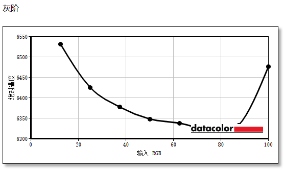 灰阶方面,显示器在全亮度下表现稳定,整体色温维持在6300K-6550K之间,十分贴近标准色温6500K。