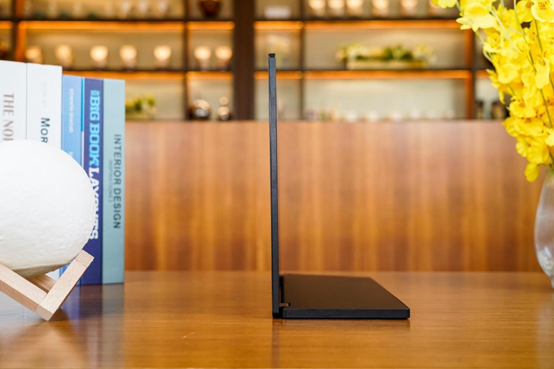 飞利浦 16B1P3320便携屏十分轻薄,显示屏带底座的重量仅1.03kg,不到两瓶矿泉水的重量,拿在手上也不会有坠手感,屏幕最薄处仅6mm,和OLED显示器相比也毫不逊色。