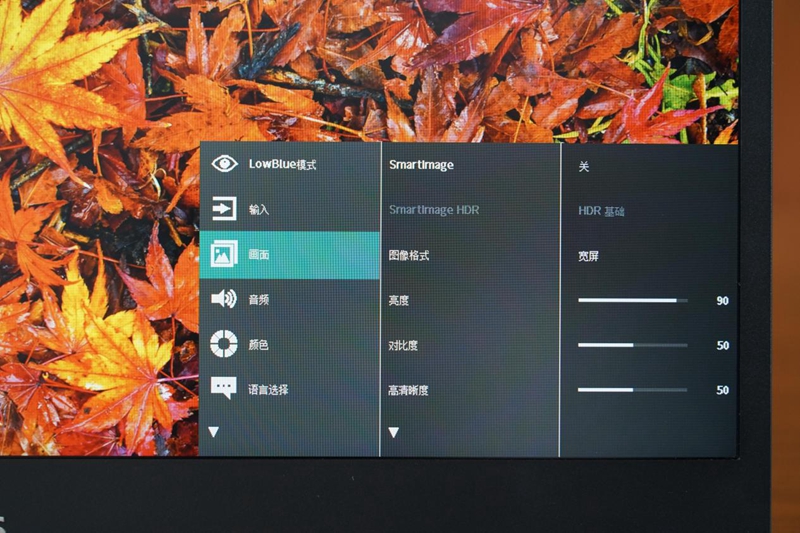 OSD菜单支持选择输入设备、调节屏幕亮度及对比度等画面选项、音量大小以及颜色自定义等选项,方便用户选择更适合自己的画面设置。