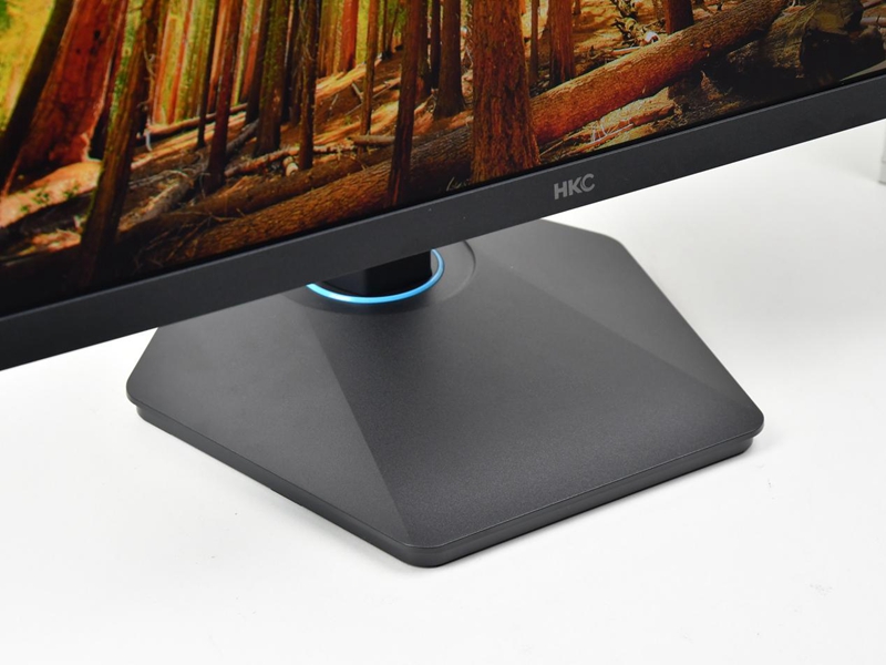 底座方面HKC G25H1这次依旧采用了我们熟悉的六边形底座,不仅小巧耐看,而且也要更符合FPS玩家的日常使用习惯,底座与支架连接部分采用蓝色圆环作为点缀,极具电竞科技感。
