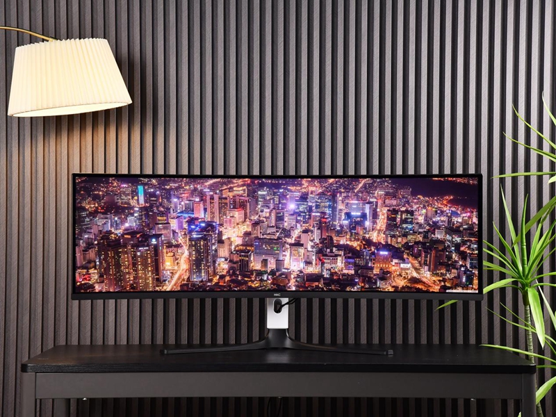 从一打眼见到这个显示器,笔者就第一时间被它那超宽视界以及三边微边框的极致窄边所吸引,不同于两块屏幕拼接起来的感觉,HKC GS49UK用一整块面板阐释了真实观感上的震撼,而三边微边框的设计则让它能够拥有更加优秀的屏占比。