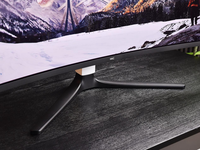 一如既往的是HKC GS49UK在底边依旧保留了HKC的品牌LOGO,底座方面因为体积与重量的原因采用了较为传统的V型底座。