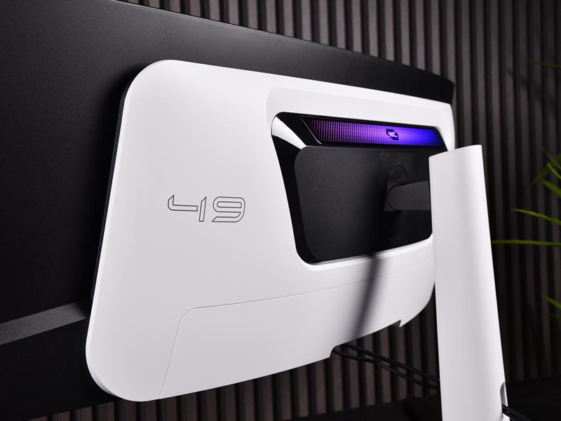 背部另外一处细节就是显示器侧面的“49”数字标识,简单理解的话这个49或许就是代指这是一款49英寸的显示器,当然HKC显然在设计之初不只是为了告诉大家这是一款49英寸的显示器,大家不妨回想一下什么产品会有明显的数字标识印在外壳上。没错这里应该是借鉴了赛车的车号设计,如果说在赛车场上车号是车手与车辆精神的象征,那么这里的数字同样也将成为HKC天启系列GS49UK的荣耀。