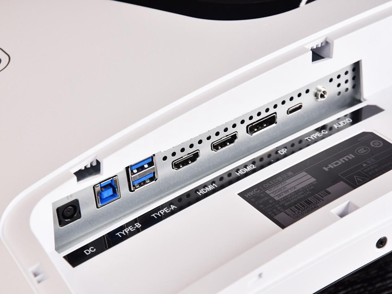 6、丰富接口支持,一线连接两端;HKC GS49UK配备有2*HDMI2.1、DP1.4、2*USB3.1、Type-C以及Audio音频输出接口,其中C口支持90W的供电输出,与笔记本连接可以实现一根线完成画面传输与笔记本供电,用户使用更加方便。