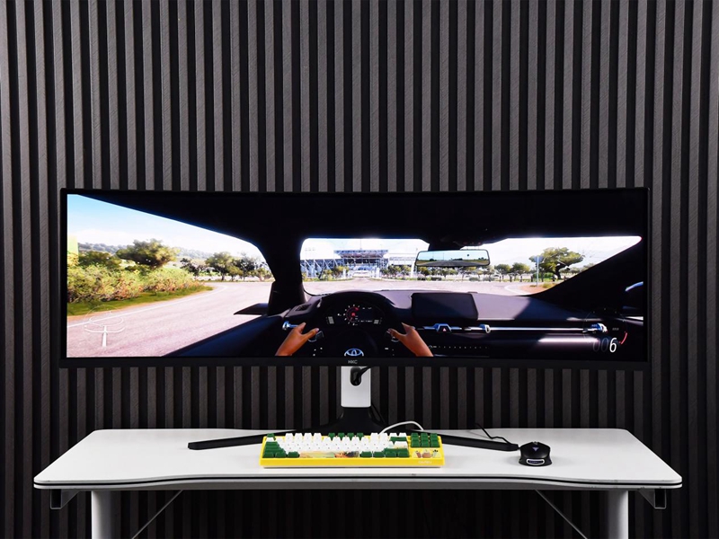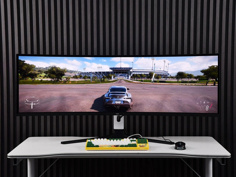 首先就是在游戏上,HKC GS49UK在玩一些赛车游戏时能够获得更加开阔的视野,就比如笔者体验的《极限竞速:地平线5》,在第三人称视角中能够看到更多的户外风景,而如果切换至第一视角则能获得极强的临场感。