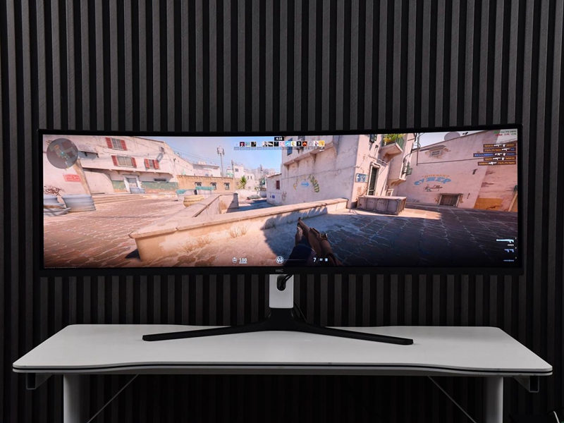 事实上如果你恰好财力雄厚,再搭配一套驾驶方向盘和踏板,获得媲美真实操作赛车的拟真体验也不是不可能。除此之外,带鱼屏在第一人称射击游戏中也有极具沉浸感的使用体验,像是全面升级起源2引擎后的《CS2》,不仅地图和武器模型更加精美,而且在光影等细节方面也进步颇多,在使用HKC GS49UK体验的这几天,笔者也是深深地代入其中,不过这样比例的屏幕也会让某些竞技玩家感到有些难受,当然如果你和笔者一样是个死斗玩家的话,HKC GS49UK也能带给你远超普通显示器的奇特体验。