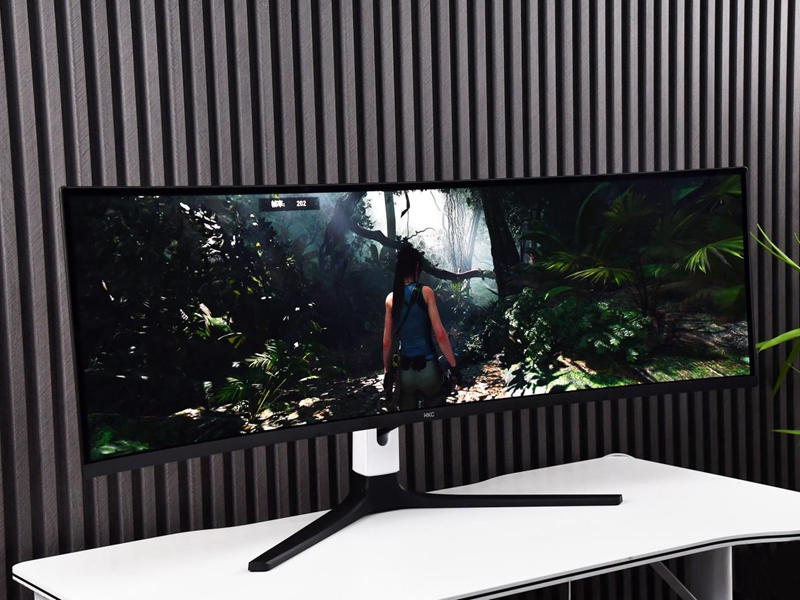 不同于常规的16:9显示器,HKC GS49UK的尺寸达到了惊人的32:9,相当于两台16:9的显示器拼接在了一起,因此在体验上HKC GS49UK相比普通16:9显示器会有更多新奇的玩法。