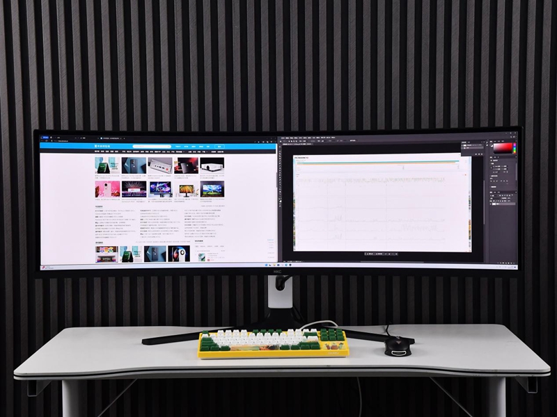 不止游戏,在办公设计中HKC GS49UK也拥有不少妙用,比如说最常见的做法就是一边通过网页浏览需要用到的资料,另一边则放着需要对比或正在进行的工作,可以说极大地提升了日常的工作效率。