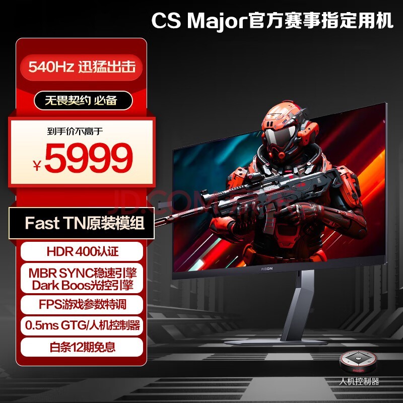 AOC电竞游戏FPS显示器 24.1英寸 原生540Hz 0.5msGTG动态控光 HDR400 MBRSync人机控制器 爱攻AG246FK